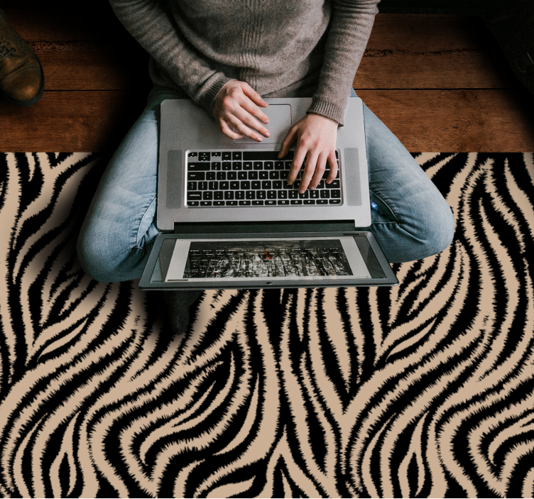 Descubre la encantadora alfombra vinílica animal print diseño de rayas zebra, una pieza que transforma cualquier espacio con su audaz estampado. Su diseño gráfico combina la elegancia de la piel de cebra, con un patrón que evoca la fauna silvestre. Los tonos en negro y beige se entrelazan en una huella animal que aporta carácter y estilo a tu hogar. ¡Es la opción perfecta para quienes buscan un toque salvaje y sofisticado!
