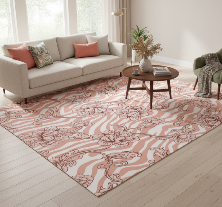 Alfombra vinílica flores estampado cebra y flores coral