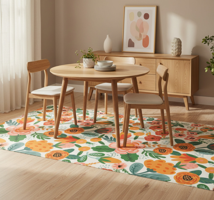 Alfombra vinílica flores estilo folk rojo y naranja
