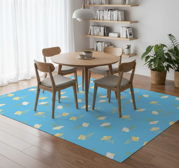 Para mantener en perfectas condiciones tu alfombra vinílica flores, simplemente utiliza un paño húmedo con agua y jabón suave. La alfombra vinílica flores fondo azul margaritas es fácil de limpiar, lo que la hace ideal para cualquier hogar. ¡Disfruta de su belleza sin preocupaciones!
