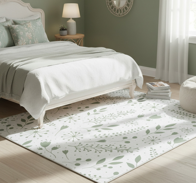 Alfombra vinílica flores hojas verdes con diseño floral