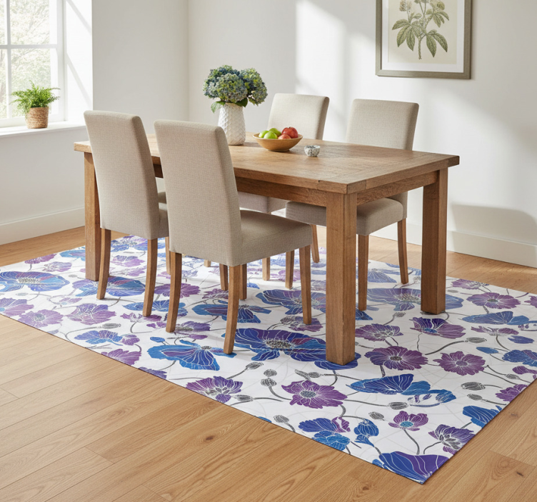 Alfombra vinílica flores jardín azul y morado