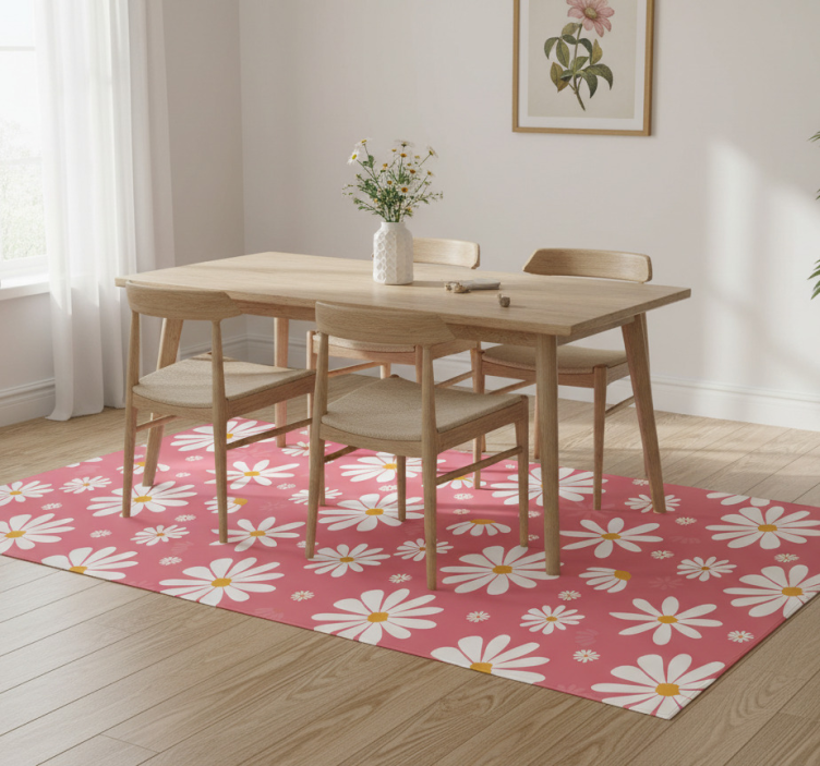 La limpieza de la alfombra vinílica flores margaritas vintage es fácil y rápida. Simplemente utiliza un paño húmedo o una mopa con agua y un detergente suave para mantener su esplendor. Así lograrás que tu alfombra luzca siempre como nueva, lista para embellecer tu espacio.