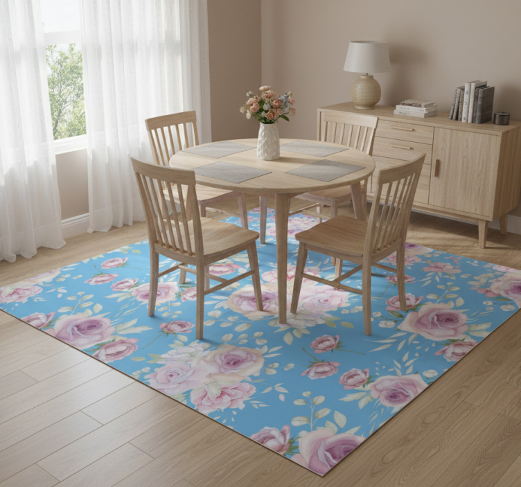 Alfombra vinílica flores rosas sobre fondo azul