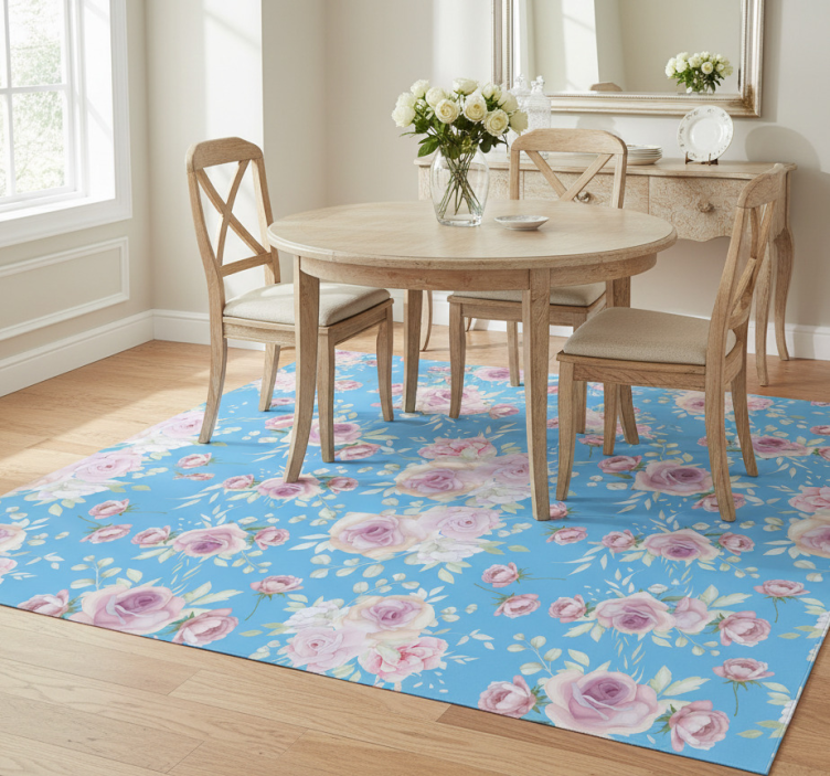 La alfombra vinílica flores rosas sobre fondo azul es la elección ideal para aquellos que buscan dar un giro refrescante a su decoración. Su diseño cautivador no solo embellece el espacio, sino que también invita a la calidez y la armonía del hogar. Imagina cómo esta pieza se convertirá en el centro de atención de tus reuniones, haciendo que cada rincón sea especial y acogedor. ¡No hay mejor manera de expresar tu estilo personal!