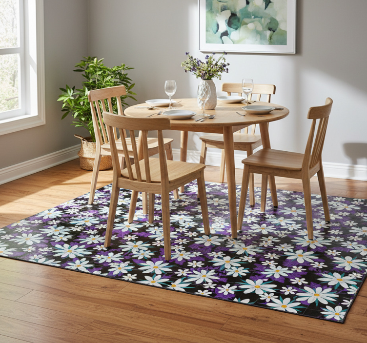La Alfombra vinílica flores sobre fondo negro es ideal para quienes desean añadir un toque fresco y colorido a su hogar. Su diseño floral no solo embellece el entorno, sino que también crea un ambiente acogedor y lleno de energía. Imagina caminar sobre una superficie que no solo es visualmente atractiva, sino que también aporta confort y estilo. ¡Es el complemento perfecto para cualquier habitación!