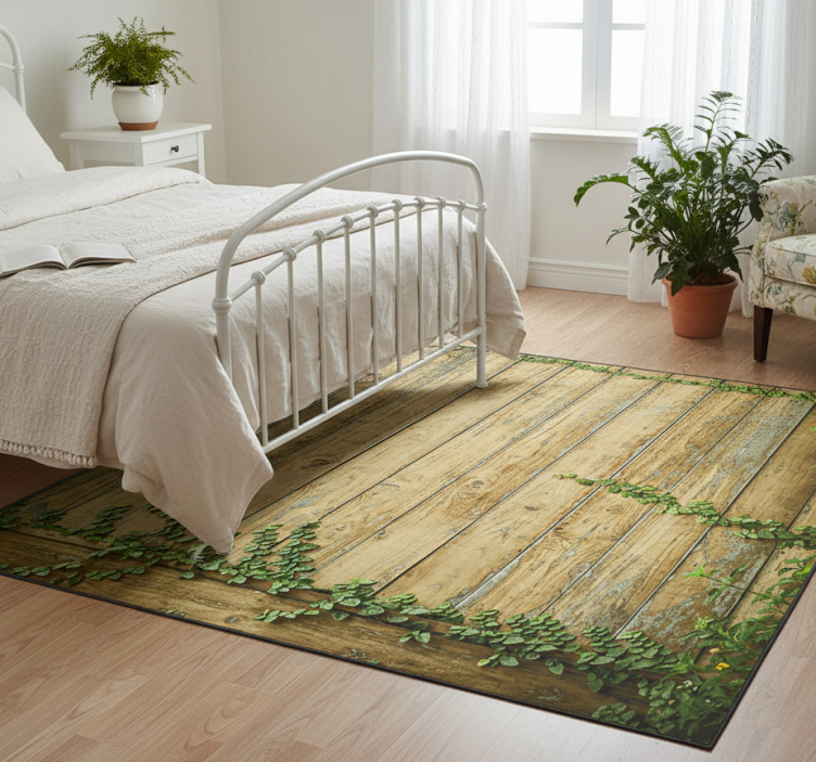 Alfombra vinílica flores en madera