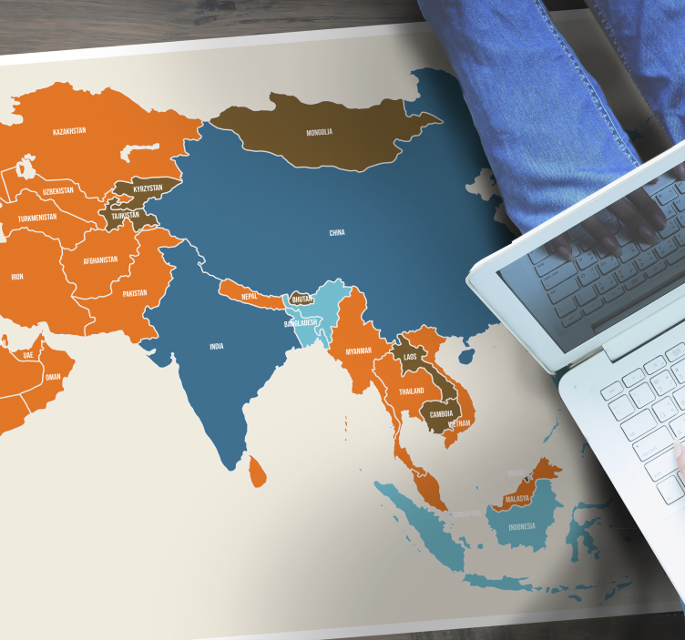 Referencia: R14375Una representación estilizada del continente asiático con países delimitados en una gama de tonos cálidos y fríos. El contraste de colores facilita la distinción entre las diferentes fronteras geopolíticas y sirve como una herramienta educativa.