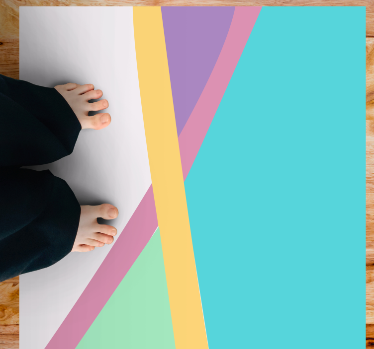 La alfombra vinílica moderna capas abstractas coloridas es una obra de arte para tus espacios. Su diseño gráfico se compone de rayas y formas geométricas que crean un ambiente vistoso y vibrante. Las tonalidades de verde azulado y pastel se entrelazan en un patrón abstracto que atraerá todas las miradas, convirtiendo cualquier habitación en un lugar acogedor y lleno de estilo.