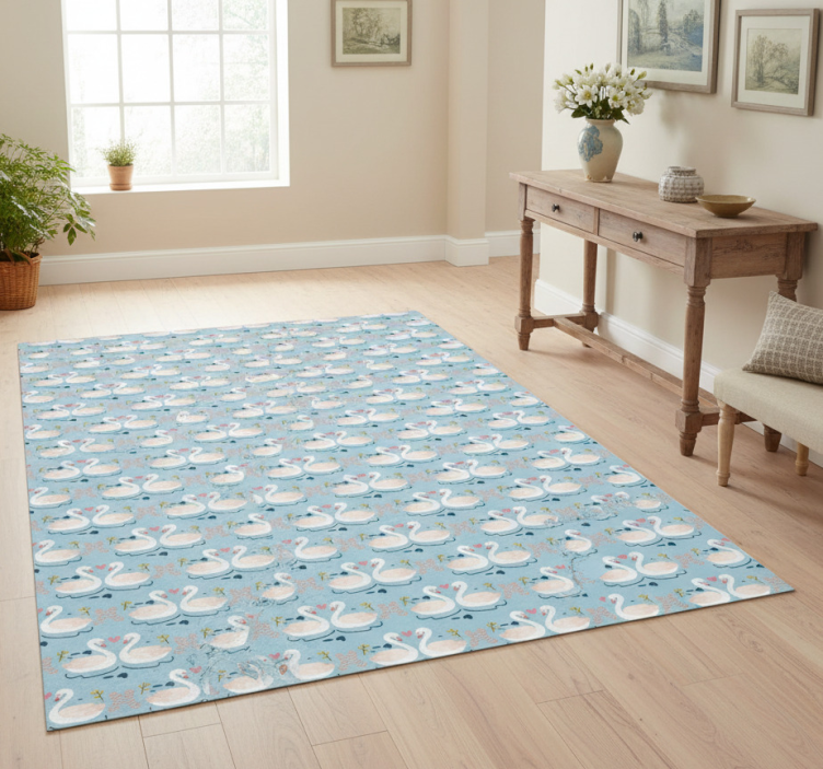 Alfombra vinílica naturaleza cisnes enamorados azul