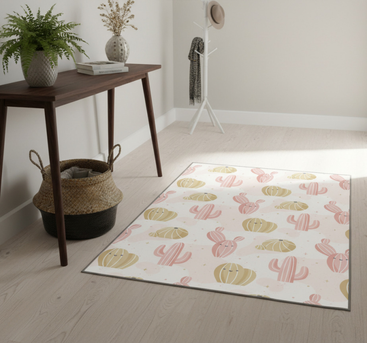 Referencia: R21947Descubre la encantadora alfombra vinílica naturaleza patrón de cactus lindo, un producto que combina diversión y estilo en un solo diseño. Esta alfombra presenta una colorida representación de cactus adorables rodeados de un fondo vibrante, ideal para añadir un toque fresco y natural a cualquier espacio. Su estética alegre y moderna la convierte en la opción perfecta para quienes buscan una decoración única y acogedora.