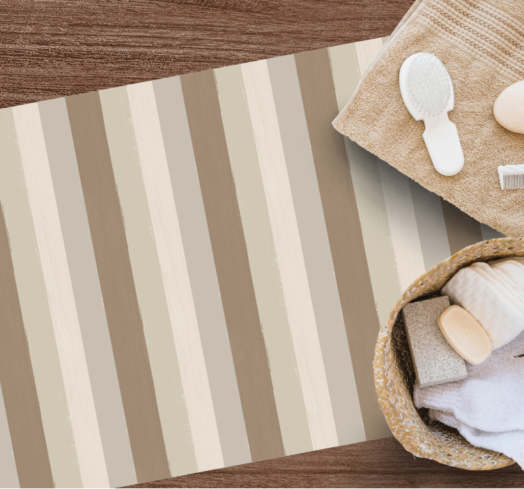 Hermosa alfombra vinílica a rayas en tonos tierra con un patrón que va progresivamente degradando, perfecta para combinar con decoraciones en esta paleta de colores. Está disponible en diferentes medidas para ajustarse al espacio donde quieras usarla, y tenemos oros productos con el mismo diseño para que haga juego perfecto en tu decoración, te podemos ofrecer cuadros, papeles pintados, posavasos, entre otras opciones. Esta alfombra de pasillo está fabricada con materiales de alto rendimiento para una larga durabilidad, siendo antideslizante, antialérgica y a prueba de agua para que puedas lavarla sin que pierda sus cualidades ni el color