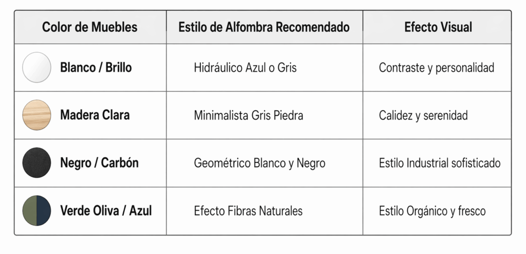 Cómo combinar el color de tu alfombra con tus muebles de cocina