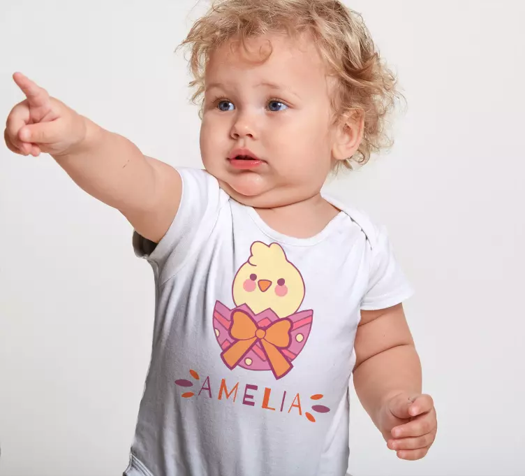 ¡Descubre la Camiseta bebé pollito lindo con moño, una prenda adorable que hará que cada día de tu pequeño sea especial! Este diseño cuenta con un pollito juguetón que lleva un lazo encantador, perfecto para resaltar la ternura de los bebés. Con un estilo vistoso, esta camiseta es personalizable con el nombre de tu pequeño, convirtiéndola en una pieza única. El polluelo se asoma alegremente sobre un huevo, capturando la esencia de la infancia. Ideal para cualquier ocasión, esta camiseta es un must-have para los pequeños amantes de los animales.