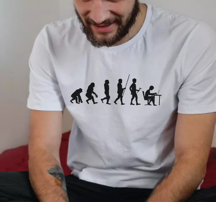 Divertida camiseta personalizable con el diseño clásico de la teoría evolutiva de Charles Darwin, pero que esta vez el último eslabón de nuestra evolución es un informático. Está disponible en diferentes tallas para ajustarse a tu contextura. Esta camiseta con nombre ha sido confeccionada con la mejor materia prima disponible en el mercado para que te sientas cómodo cuando la uses, te sentirás como si estuvieras entre algodones. Podrás lavarla y plancharla evitando productos de limpieza muy abrasivos y va a conservar sus cualidades y definición de color con el paso del tiempo