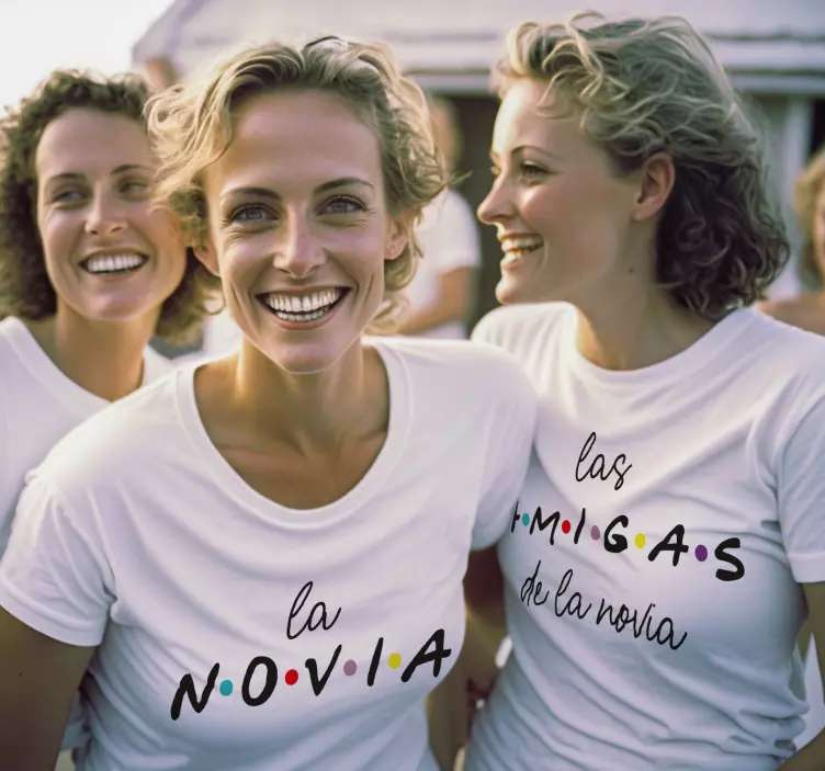 Esta camiseta equipo de chicas es el regalo perfecto para la novia y sus amigas en la despedida de soltera. Con un diseño divertido y original que incluye las palabras 'novia' y 'amigos', esta camiseta es ideal para demostrar la unión del grupo y celebrar la ocasión de una manera única. Además, está hecha de 100% algodón para asegurar la máxima comodidad y durabilidad. Disponible en tallas desde S hasta XXL para adultos, y desde 2 años hasta 14 años para niños y de 0 a 2 años para bebés. ¡No te pierdas la oportunidad de lucir esta camiseta en tu despedida de soltera!