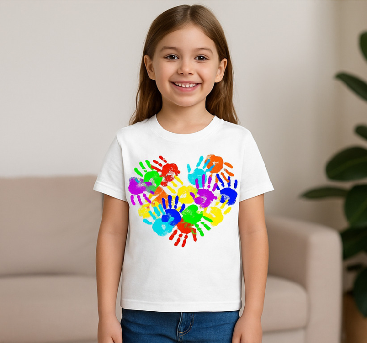 Camiseta huellas de manos en forma de corazón