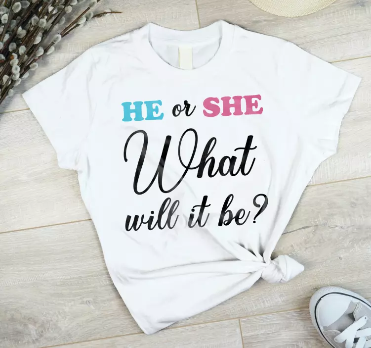 La camiseta infantil ¿Él o ella? es una elección maravillosa para aquellos que desean compartir la emoción de la llegada de un nuevo miembro a la familia. Su diseño atractivo y divertido no solo es un gran conversador, sino que también permite a los padres expresar su alegría de una manera única y memorable. ¡Imagínate las sonrisas y los momentos entrañables que se generarán al usarla!