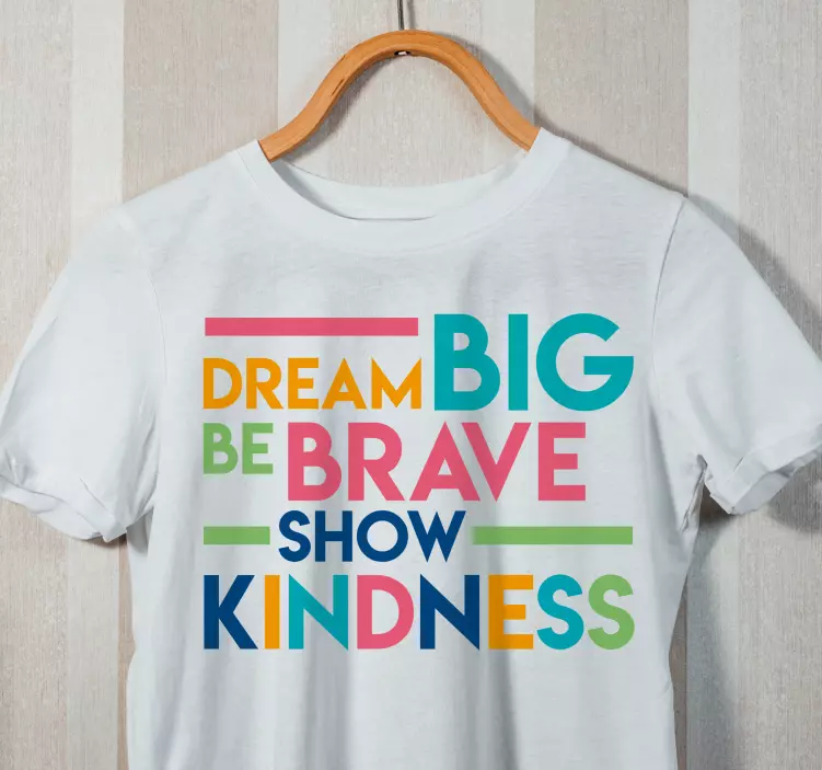 La camiseta inspira con bondad es un verdadero reflejo de optimismo y alegría. Su diseño vibrante y vistoso combina colores multicolor que evocan un sentimiento de motivación. Con un mensaje edificante y positivo, esta prenda es perfecta para aquellos que quieren lucir un estilo juvenil y amable. La frase inspiradora que adorna esta camiseta te recordará siempre la importancia de soñar y ser Bravo en cada show de la vida.