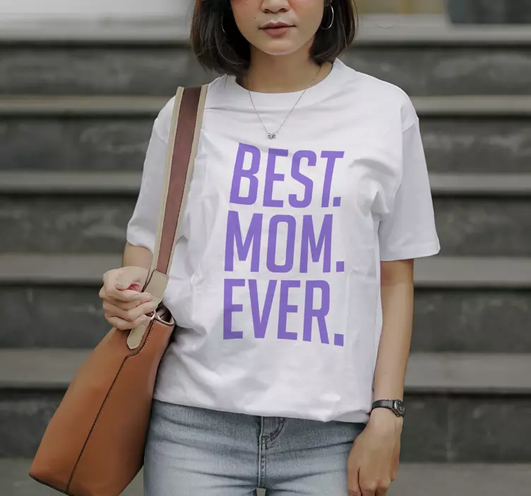 Camiseta con mensaje Best Mom Ever para todas las madres que cuidan mucho a sus hijos y están orgullosos de ellos. Esta camiseta es un buen regalo para el día de la madre y que seguro la vestirá con orgullo. Ropa mujer de alta calidad y fácil lavado. Escoge