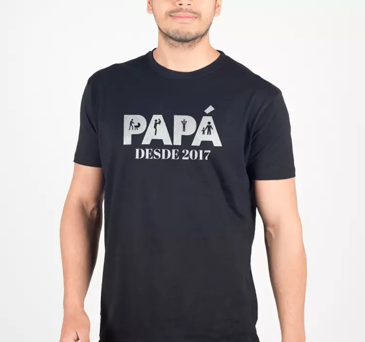 Camiseta personalizable con el texto Papá desde... y un año que podrás cambiar y poner el que tu quieras, solo tienes que indicarlo en el campo de texto antes de realizar la compra. Pide este diseño en sudaderas hombre y muestra con orgullo que eres un padrazo.