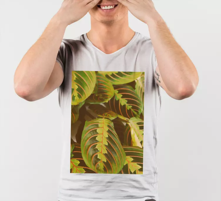 Descubre nuestra camiseta patrón de hoja verde, una pieza única que evoca la frescura de la naturaleza. Con un diseño inspirador que incluye maranta, hojas y un estilo tropical, esta camiseta te transporta a la selva y la jungla. Su ilustración está pintada con una paleta de verdes vibrantes que reflejan un estilo botánico y exótico, creando una textura visual que te hará sentir más cerca de la naturaleza.