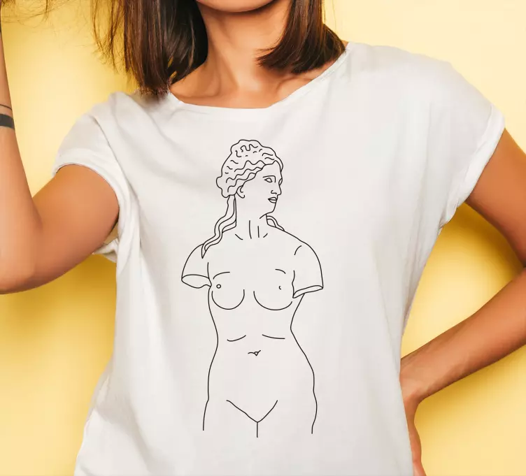 La camiseta silueta femenina elegante es una pieza única que fusiona la esencia del arte antiguo griego con un diseño moderno y minimalista. Su gráfica presenta una estatua de mujer en un cautivador retrato que evoca la cultura y la historia, todo en un estilo artístico y abstracto que transforma lo cotidiano en algo excepcional. Esta camiseta es más que una prenda; es una declaración de moda que celebra la belleza y la elegancia femenina.