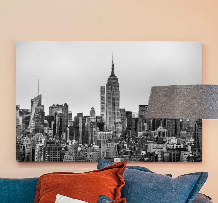 Descubre el impresionante Cuadro ciudades silueta de nueva york, que captura la esencia del horizonte neoyorquino. Este diseño artístico presenta un paisaje urbano lleno de rascacielos que se alzan majestuosamente, todo en una elegante escala de grises. Con un estilo moderno y minimalista, este cuadro es perfecto para cualquier espacio, elevando tu decoración con la imponente silueta de la ciudad que nunca duerme.