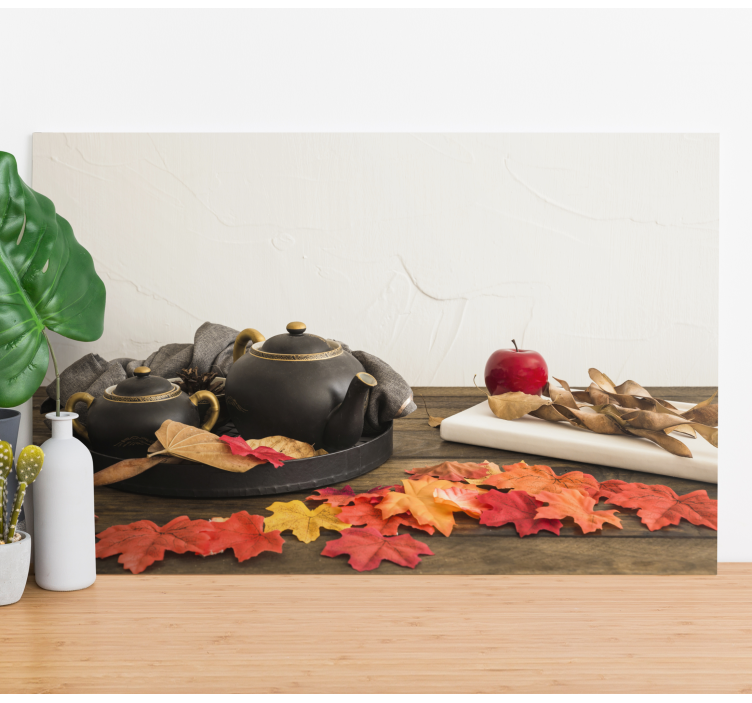 Descubre la belleza de la naturaleza en tu hogar con nuestro Cuadro paisajes arreglo de té de otoño. Este diseño encantador presenta una delicada composición de teteras y hojas de otoño sobre una mesa, evocando una atmósfera de naturaleza muerta que invita a la reflexión. La combinación de elementos rústicos como la manzana y las hojas caídas resalta la calidez de la temporada, creando un ambiente acogedor y sofisticado al mismo tiempo.