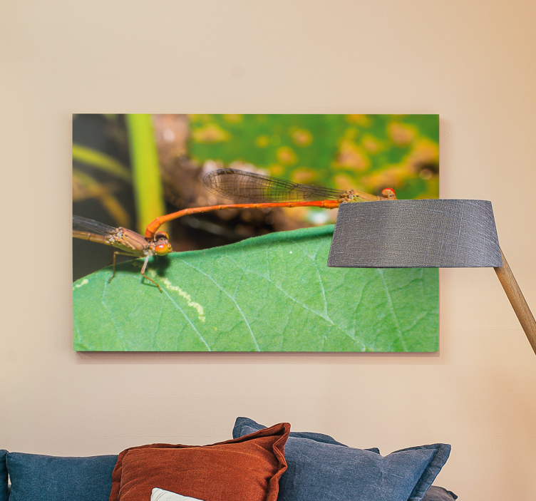 Descubre la belleza de la naturaleza en tu hogar con nuestro Cuadro libélulas par de libélulas. Este impresionante diseño presenta una hermosa libélula posada sobre delicadas hojas verdes, capturando la esencia del aire libre. La fotografía de cerca resalta los detalles de estos insectos, brindando un toque fresco y vibrante a cualquier espacio. Ideal para los amantes de la naturaleza, este cuadro es una ventana a un mundo lleno de vida.