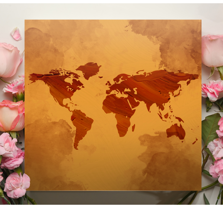 Referencia: Q6671El diseño presenta un mapa vintage del mundo, destacando los continentes con un acabado texturizado. El fondo exhibe tonos suaves y terrosos que complementan los contornos geográficos, creando una visual armoniosa. Este mapa sirve como un elegante tributo a la exploración y la conciencia global.