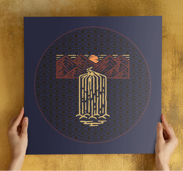 Descubre la magia de la naturaleza con nuestro Cuadro paisajes paisaje de cascada serena, una obra que captura la esencia de un paisaje idílico. Este diseño presenta una cascada que fluye suavemente entre montañas majestuosas, iluminado por un sol radiante que tiñe el cielo de tonos púrpura, lila y morado. Con un patrón geométrico y un estilo minimalista, este dibujo africano evoca un ambiente de serenidad y paz. La representación abstracta de la naturaleza se completa con un círculo que simboliza la armonía y el equilibrio, perfecto para añadir un toque de frescura a cualquier espacio.