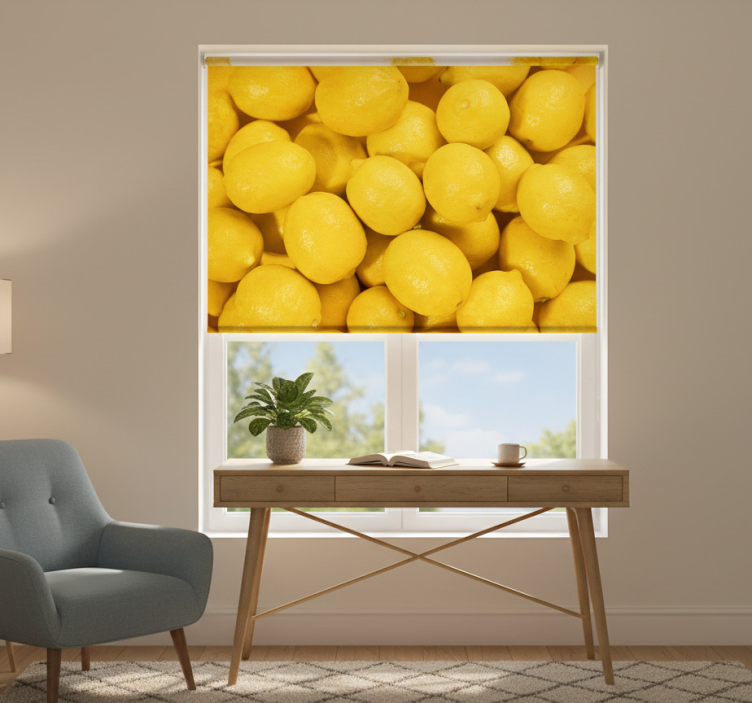 Referencia: E8769El estor enrollable amarillo limones es una pieza única que transforma cualquier espacio en un rincón alegre y vibrante. Su diseño presenta limones frescos sobre un fondo amarillo brillante, creando una atmósfera luminosa y fresca que evoca la calidez del verano. Ideal para iluminar tus días, este estor no solo es un elemento decorativo, sino también funcional, ya que protege tu hogar de la luz solar directa y proporciona la privacidad que necesitas.