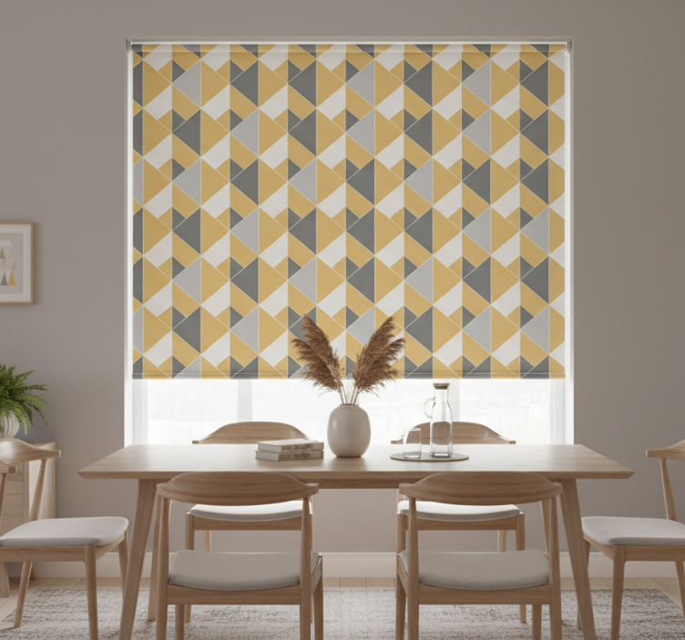 Estor enrollable amarillo patrón amarillo y gris