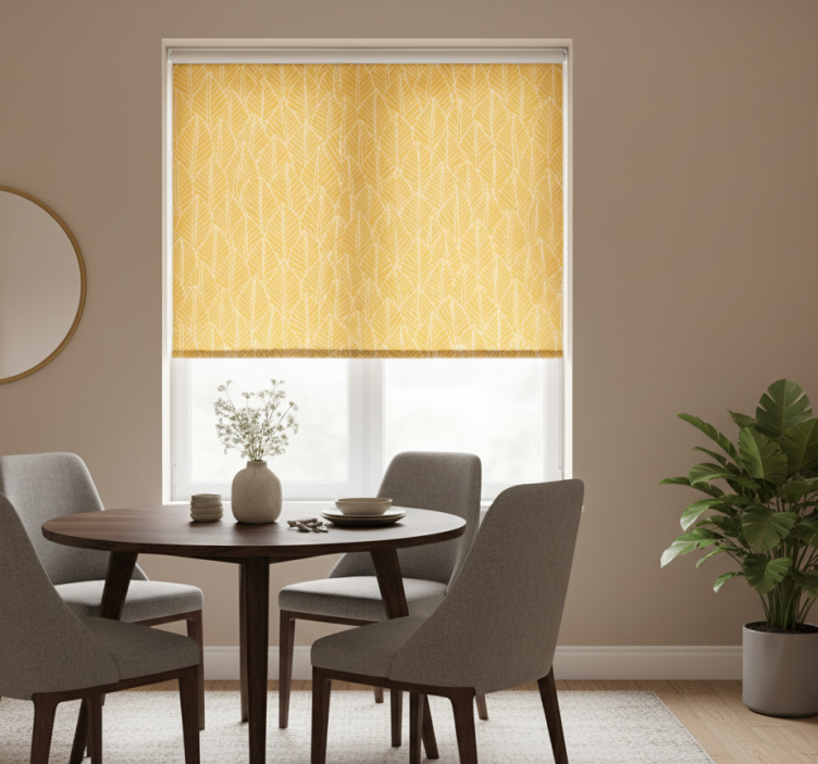 El estor enrollable amarillo es ideal para quienes buscan dar un aire fresco y alegre a sus espacios. El estor enrollable amarillo patrón follaje amarillo no solo embellece tu hogar, sino que también se convierte en un elemento clave en la decoración. Al usar este estor, puedes crear un ambiente acogedor y lleno de energía, perfecto para disfrutar de tus momentos en familia o recibir a tus amigos. ¡Deja que la luz natural entre mientras mantienes la privacidad!