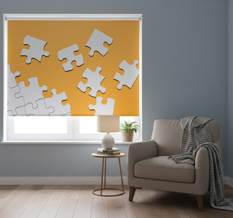 Estor enrollable amarillo piezas de rompecabezas montadas