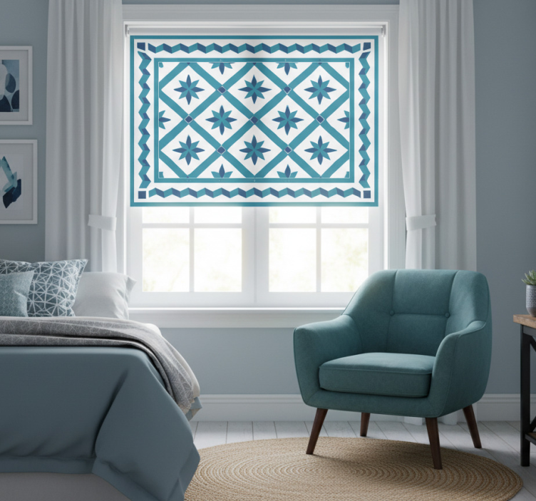 Estor enrollable azul azulejos de estrellas geométricas