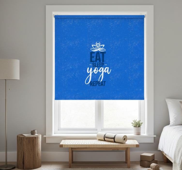 El Estor enrollable azul es la solución ideal para quienes desean transformar su espacio. Su lema, comer dormir yoga repetir, refleja la versatilidad de este estor, haciéndolo perfecto para cualquier actividad del día a día. Imagina disfrutar de un ambiente acogedor mientras comes, descansas o practicas yoga, todo gracias a este estor que no solo embellece tu hogar, sino que también te protege de la luz solar directa. ¡Haz de tu habitación un lugar donde cada momento cuente!