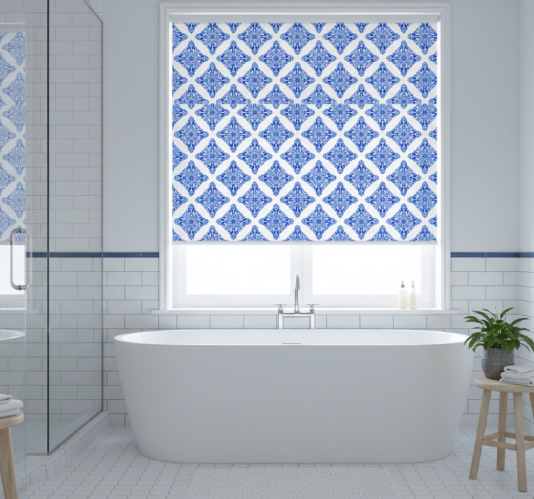 Estor enrollable azul con diseño estampado