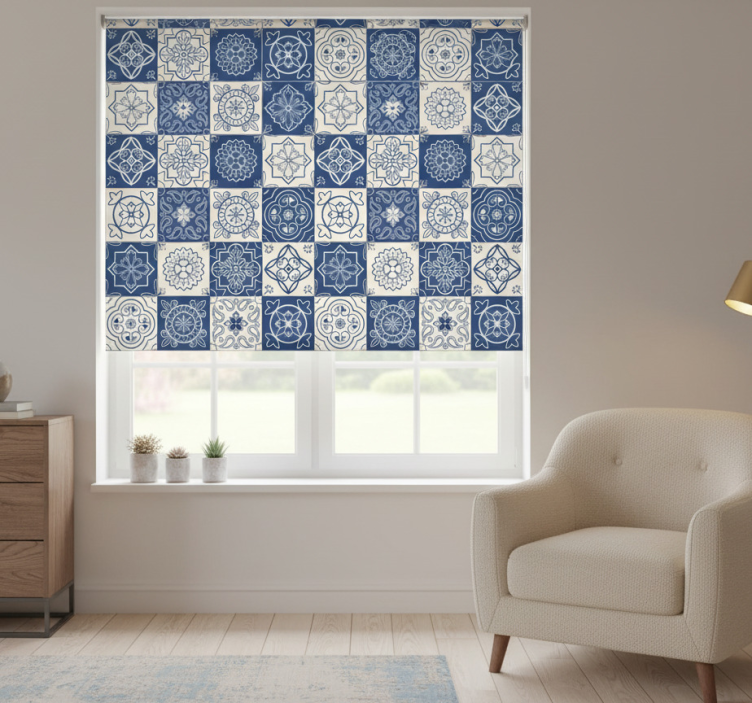 Estor enrollable azul estampado de azulejos