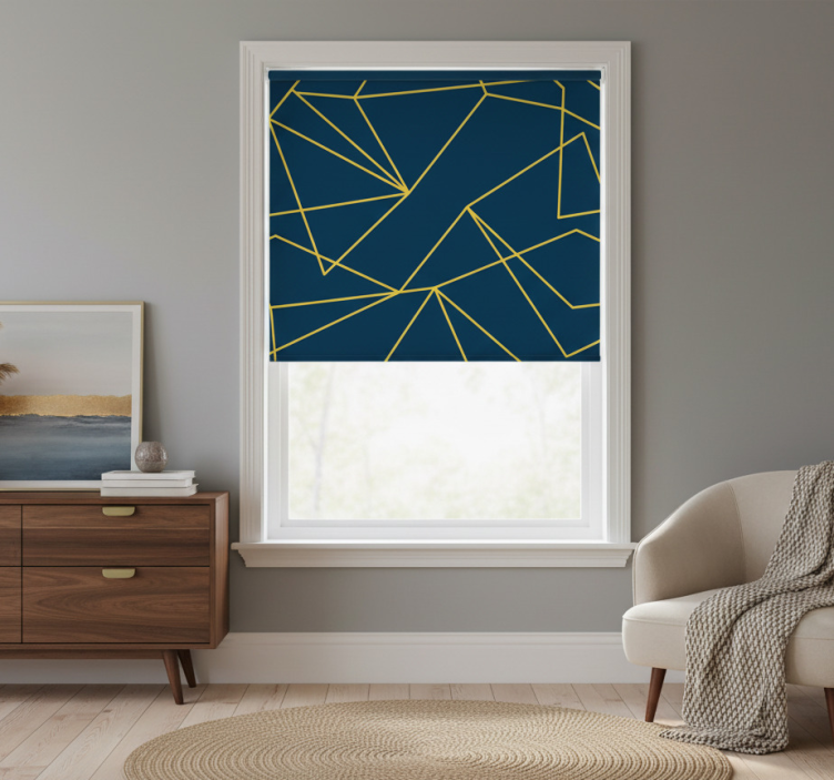 Estor enrollable azul líneas geométricas doradas