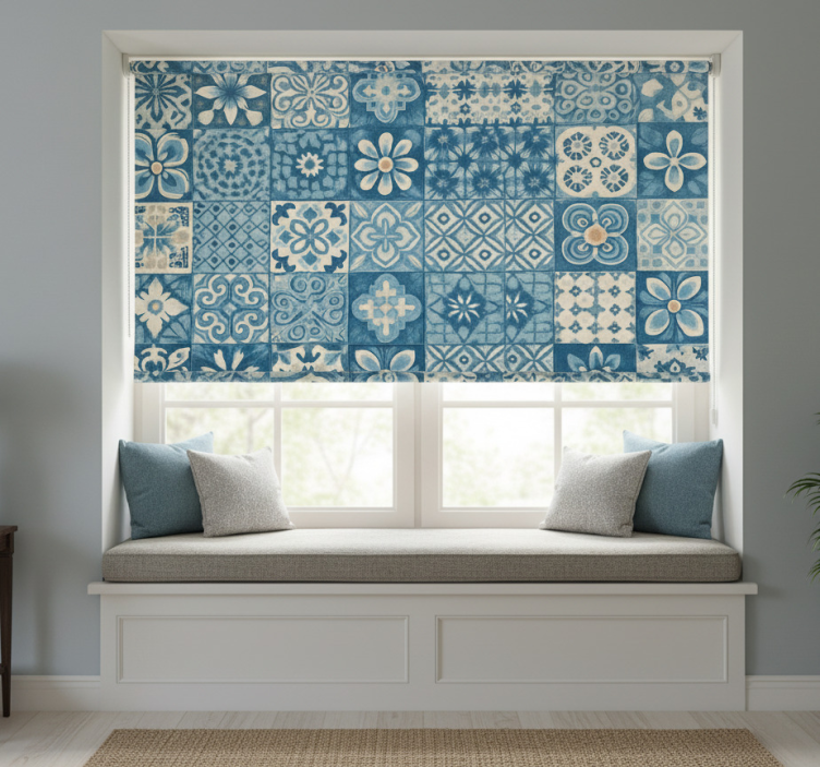 Estor enrollable azul mosaicos circulares