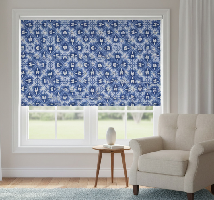 Estor enrollable azul ornamental