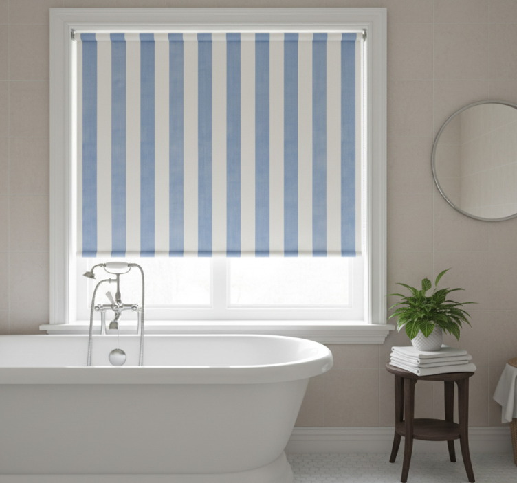 Estor enrollable azul rayas azules y blancas