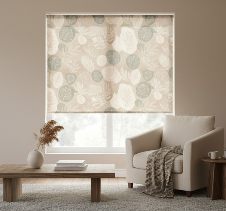 Estor enrollable beige abstracto botánico neutro