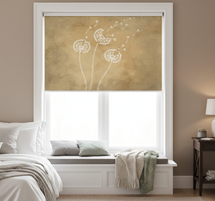 Estor enrollable beige diente de león con y sin pétalos