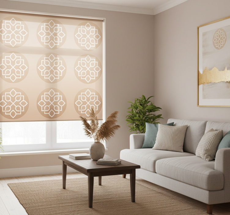 Estor enrollable beige diseño de mandala líneas geométricas