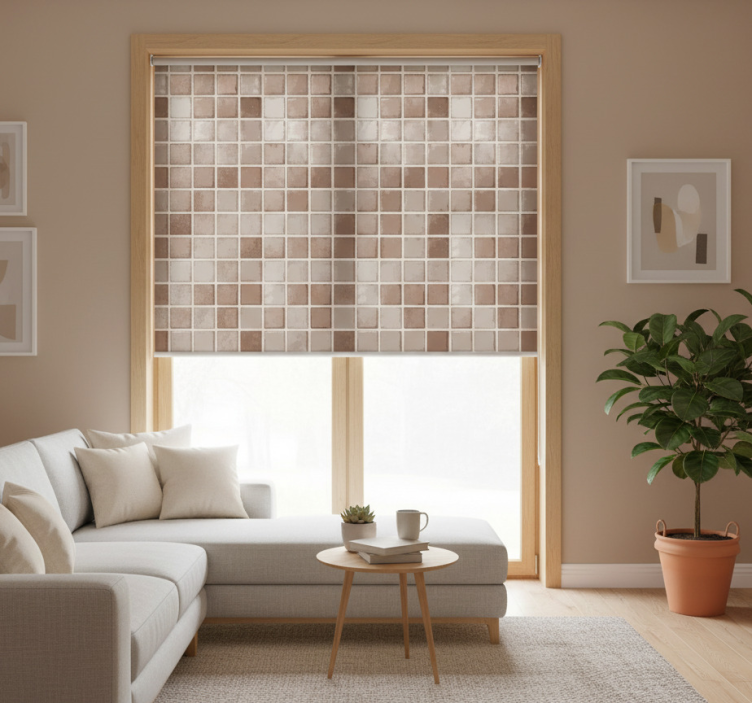Estor enrollable beige patrón de cuadrados cerámicos