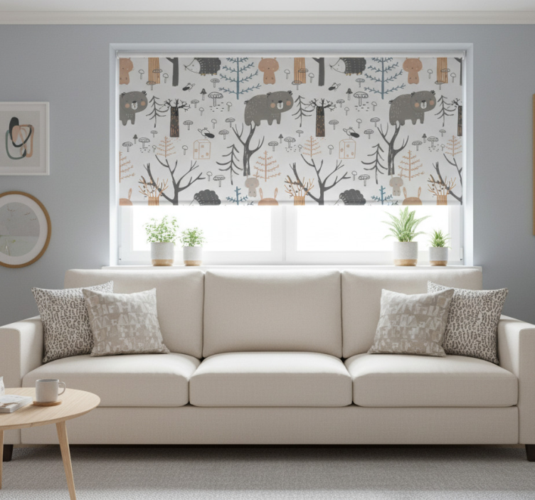 Estor enrollable blanco bosque escandinavo con animales