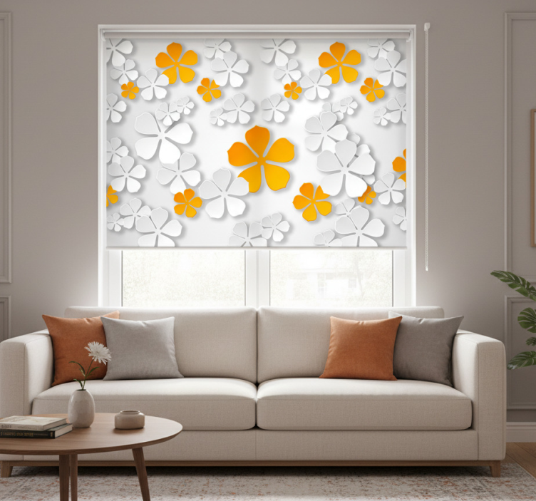 Estor enrollable blanco contraste floral